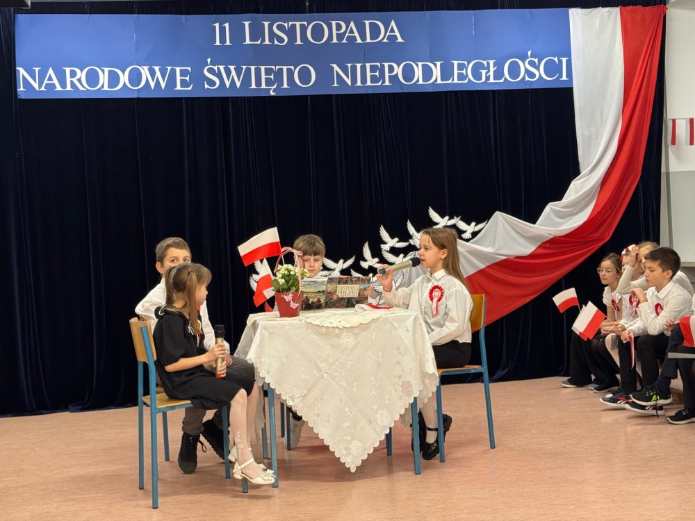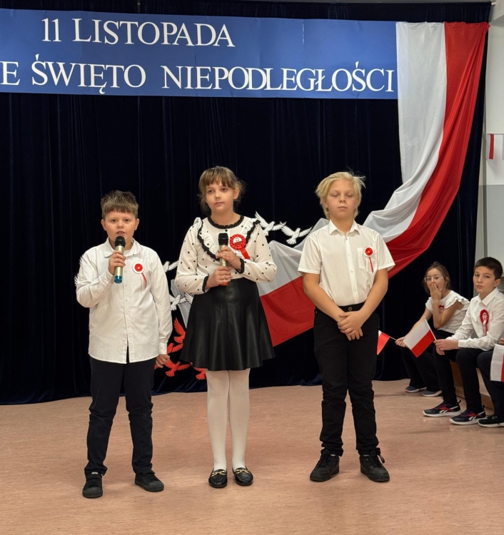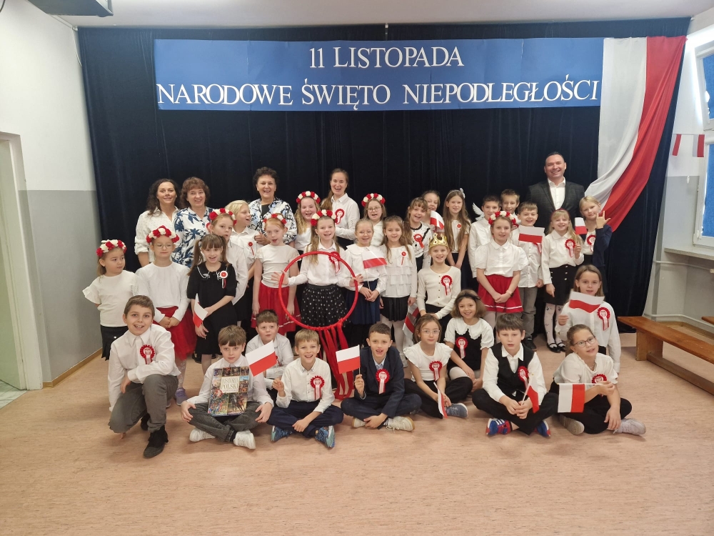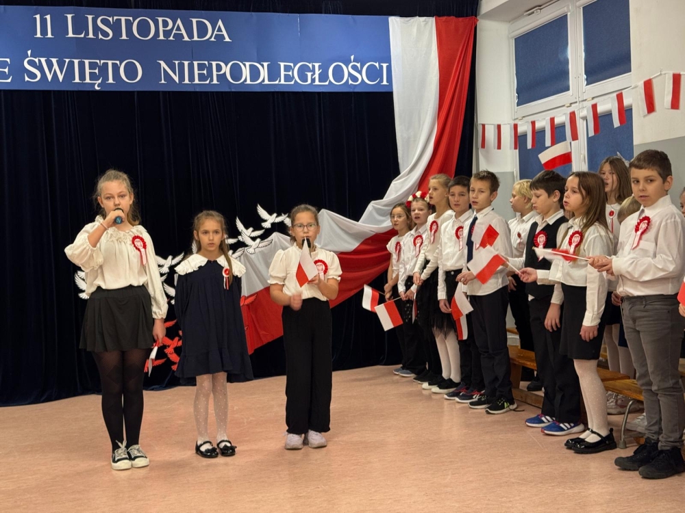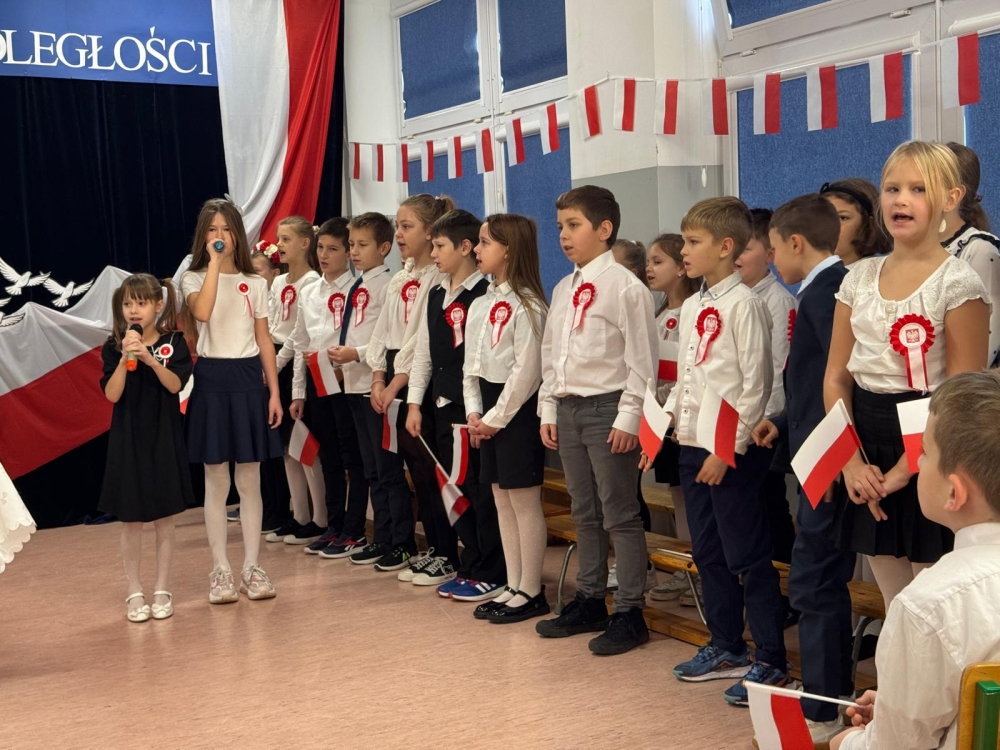 Podczas występu uczniowie z wielkim zaangażowaniem recytowali piękne, patriotyczne wiersze, przypominając wszystkim, jak ważne są dla nas wolność i miłość do Ojczyzny. Niezwykłym akcentem była muzyczna interpretacja utworu "Szara piechota" – uczennica zagrała melodię na dzwonkach, a pozostali uczniowie wykonali pieśń a capella.