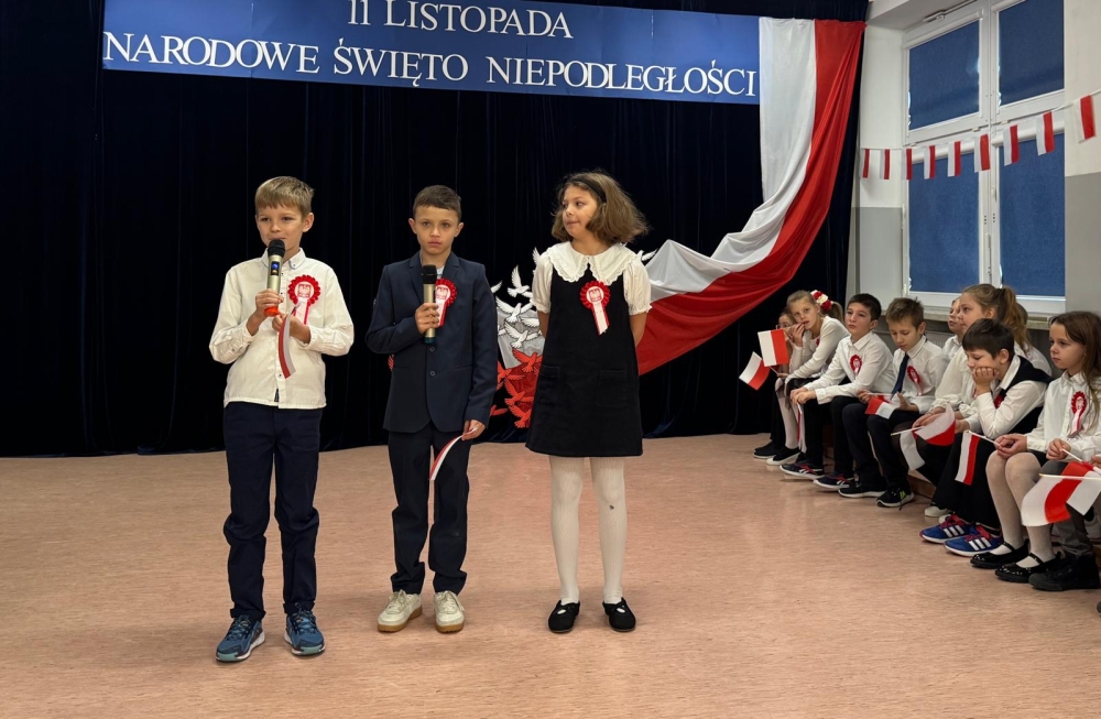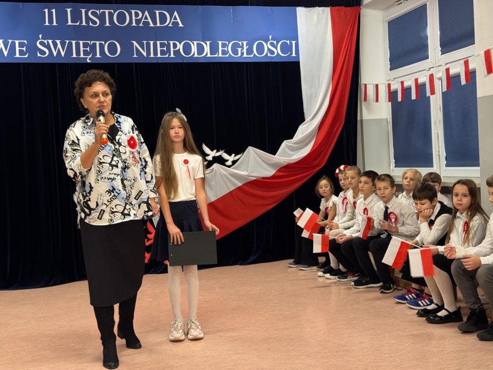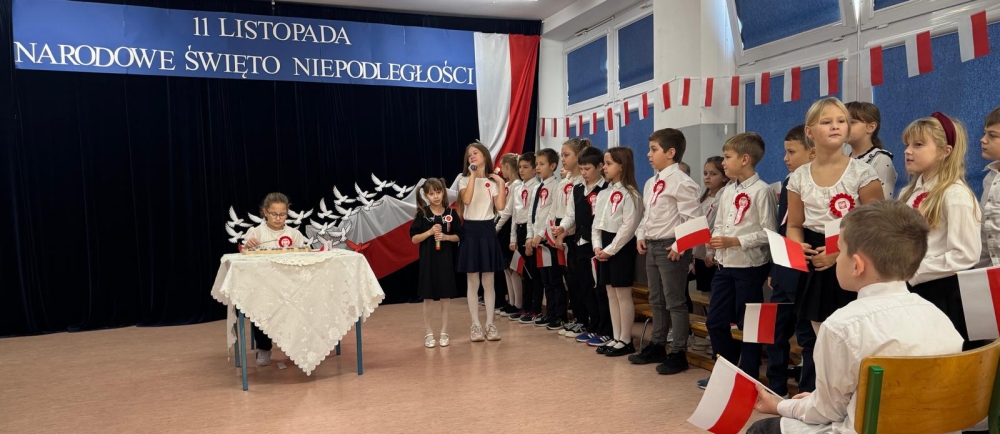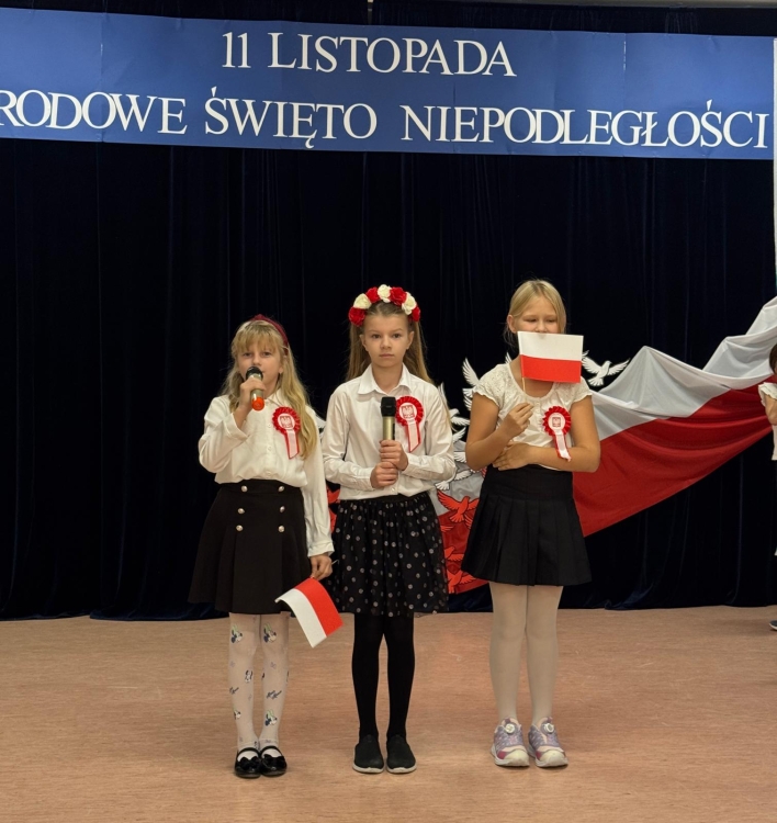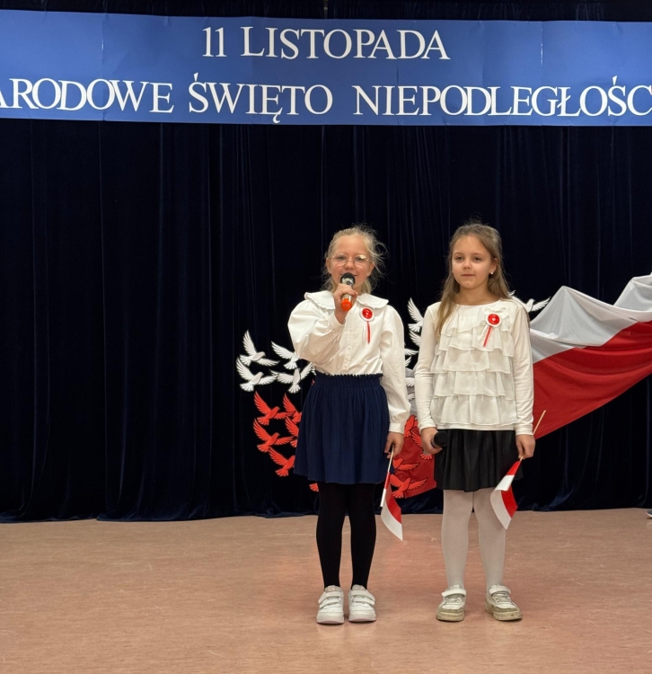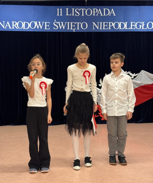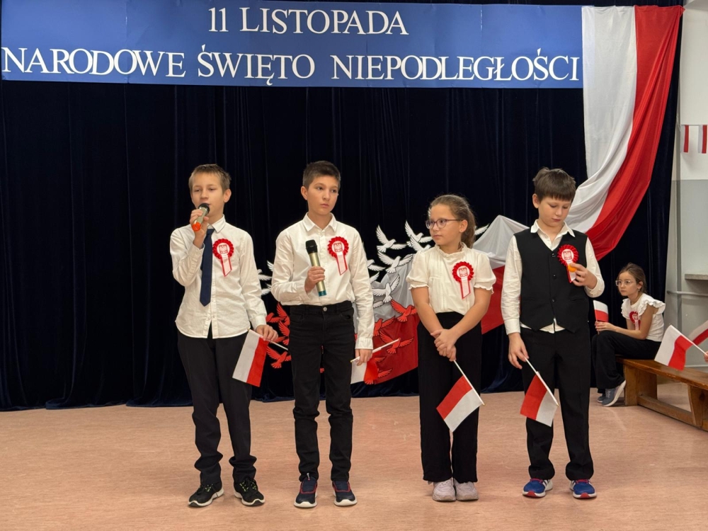 Podczas występu uczniowie z wielkim zaangażowaniem recytowali piękne, patriotyczne wiersze, przypominając wszystkim, jak ważne są dla nas wolność i miłość do Ojczyzny. Niezwykłym akcentem była muzyczna interpretacja utworu "Szara piechota" – uczennica zagrała melodię na dzwonkach, a pozostali uczniowie wykonali pieśń a capella.