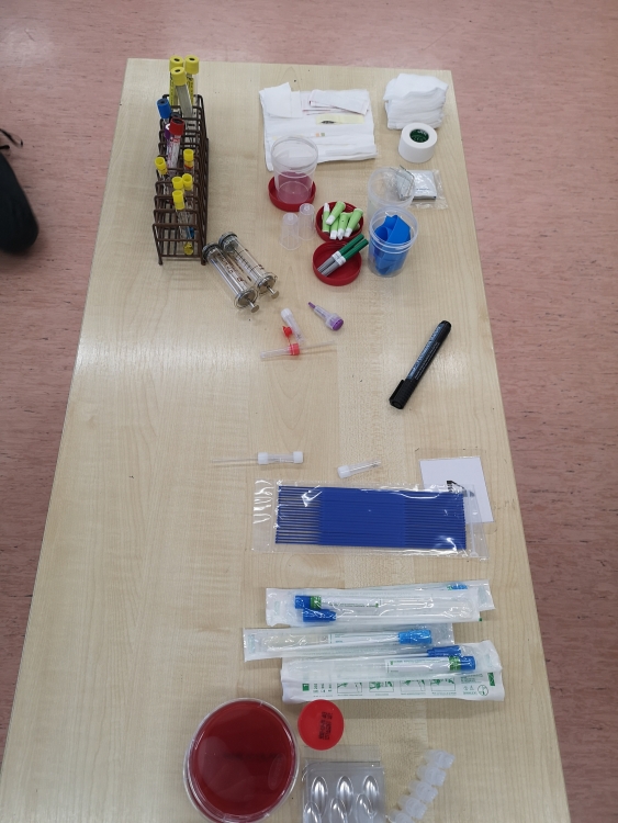 Podczas zajęć przeprowadzono doświadczenie – pobrano próbki z różnych powierzchni: podłogi, klamki, szkolnej ławki, monety oraz dłoni wybranych uczniów przed i po umyciu. Następnie założono hodowlę, aby zaobserwować rozwój mikroorganizmów.